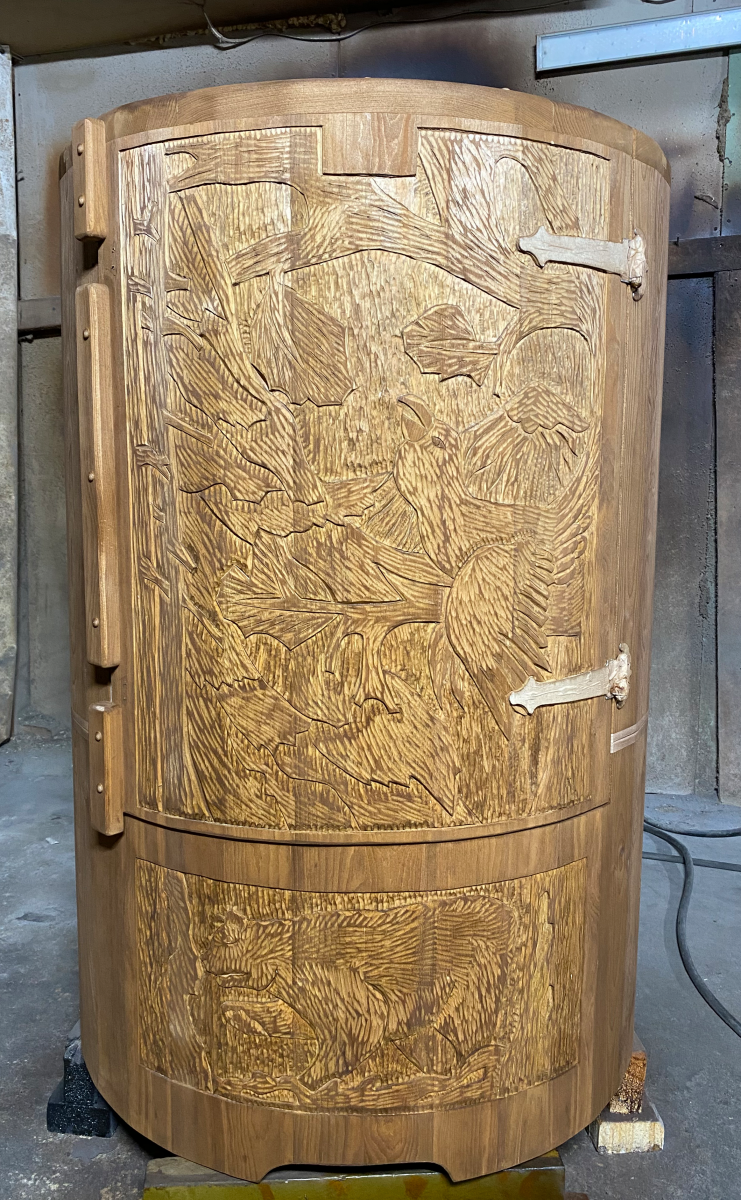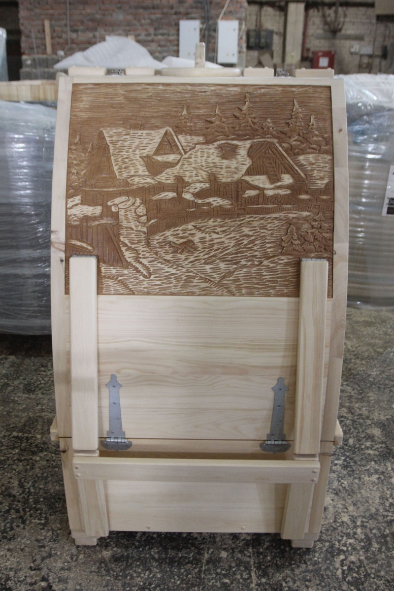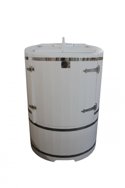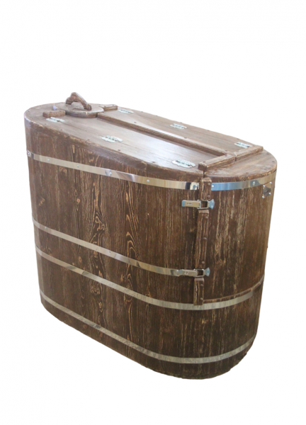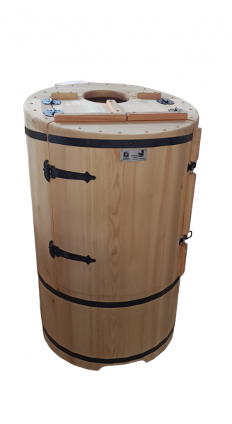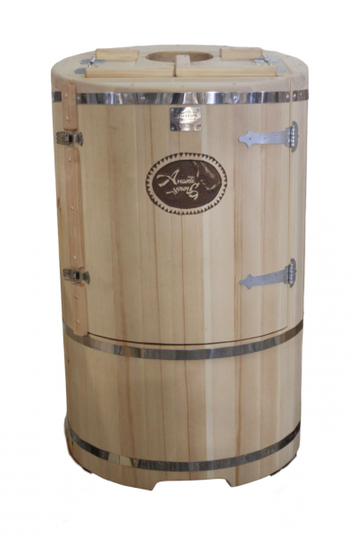 Это круглая фитобочка из кедра увеличенных размеров с толщиной стенок 45 мм. Подходит для людей высокого роста и крупной комплекции. Фитобочка оборудована откидными створками, дверцей и отверстием для головы. Верхний скос изделия делает положение головы более комфортным и улучшает обзор. Во время парения человек сидит внутри кедровой бочки, а голова находится снаружи. Благодаря этому исключается возможность перегрева. Подлокотники из кедра, встроенные ручки на створках и двери делают эксплуатацию более удобной.